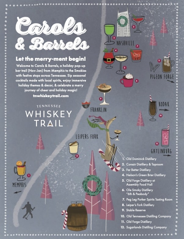 Carols & Barrels travel planning? Done ✅ thanks to our easy-to-use Carols & Barrels Trip Guide, filled with all the details of each distillery’s pop-up bar from the Smokies to Memphis.