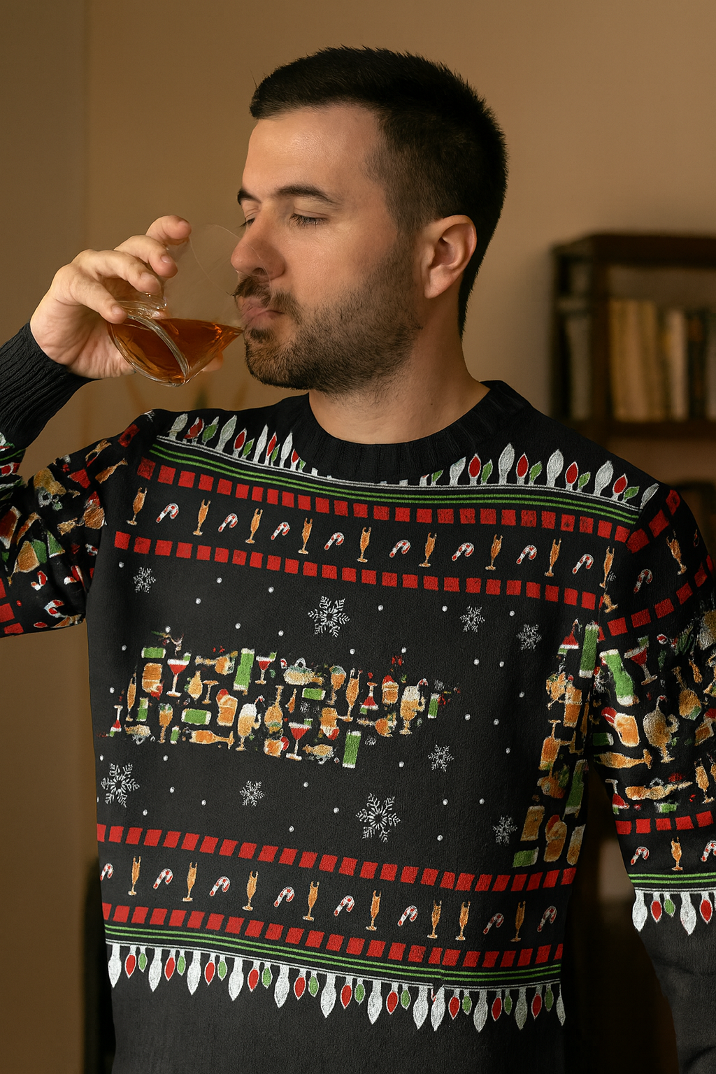 For those who complete the full trail, cozy up even more with the Ugly Sip-mas Sweatshirt-a holiday-ready sweater brimming with candy canes, glowing bulbs, snowy flakes, and whiskey bottles aplenty to sip the season in style.